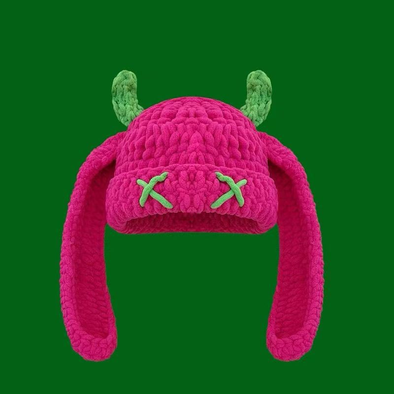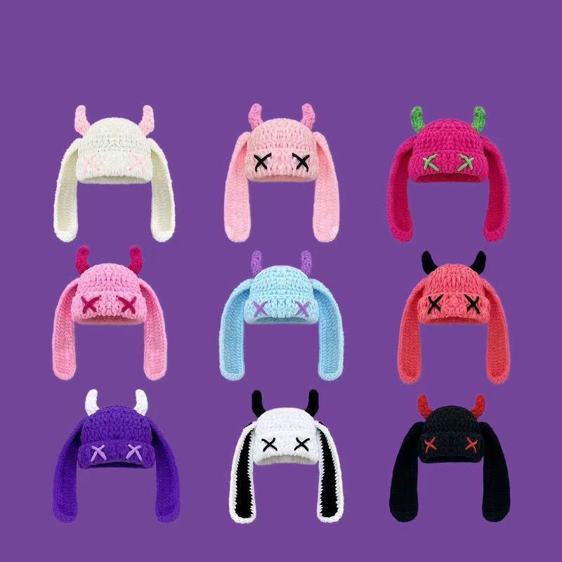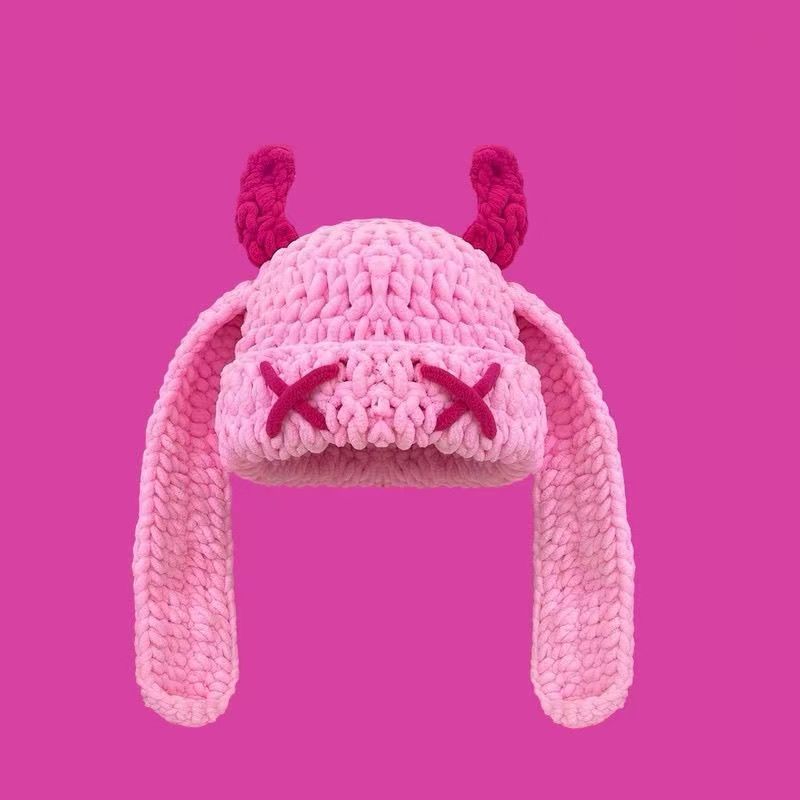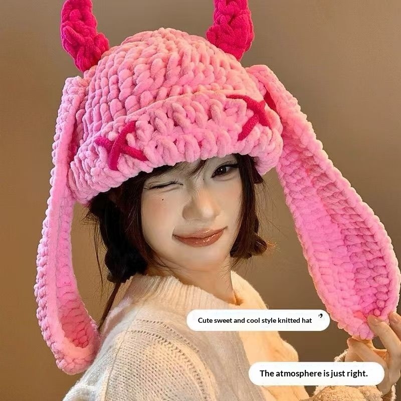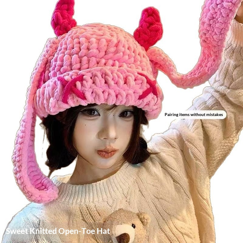 Japanese-style Sweet Dopamine Little Devil Knitted Hat For Women