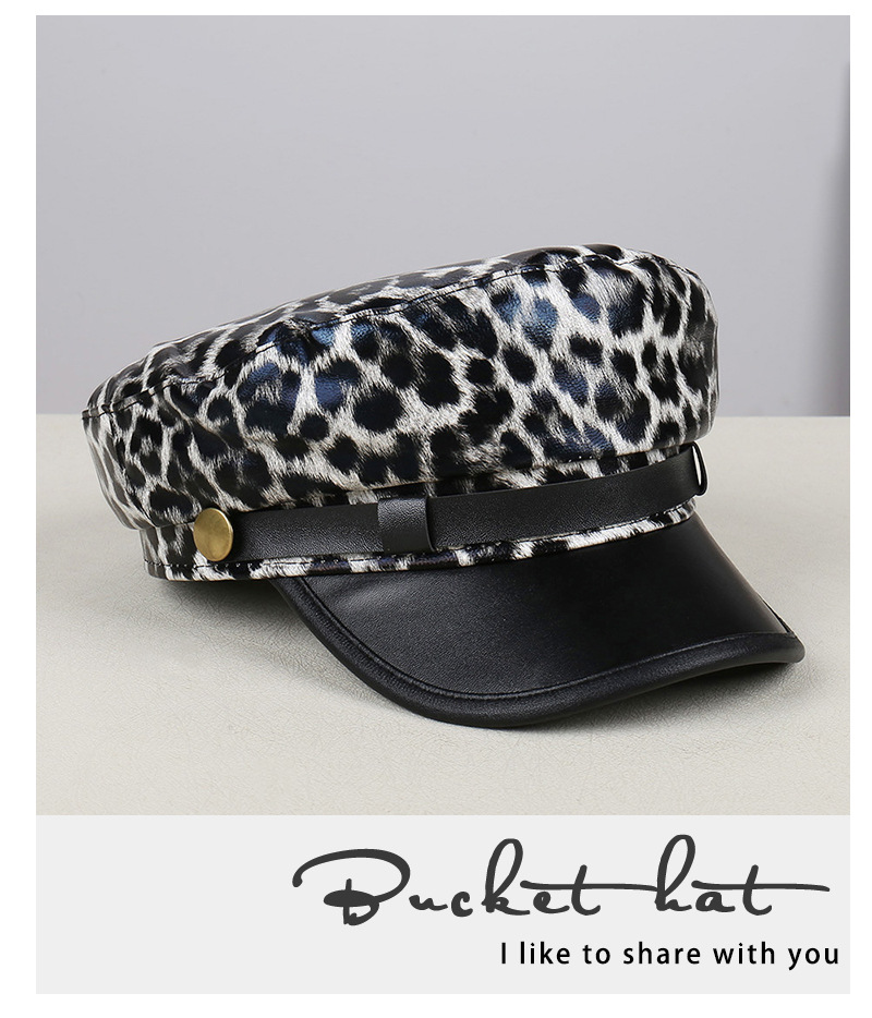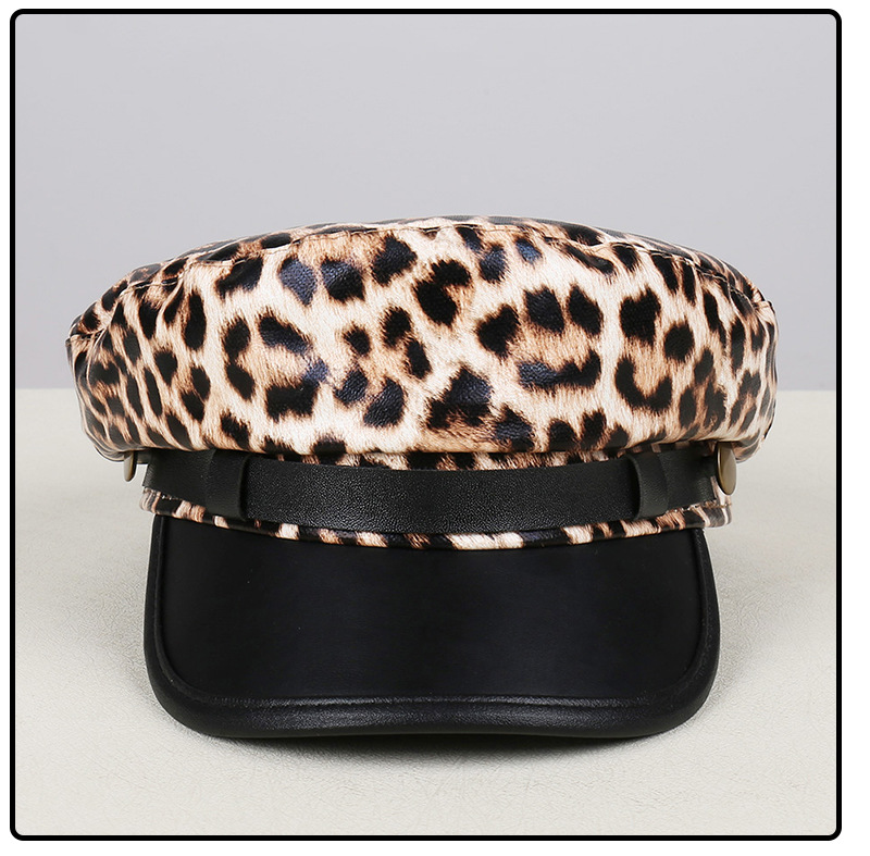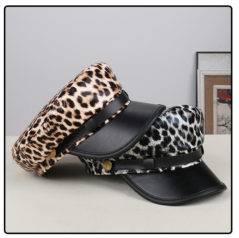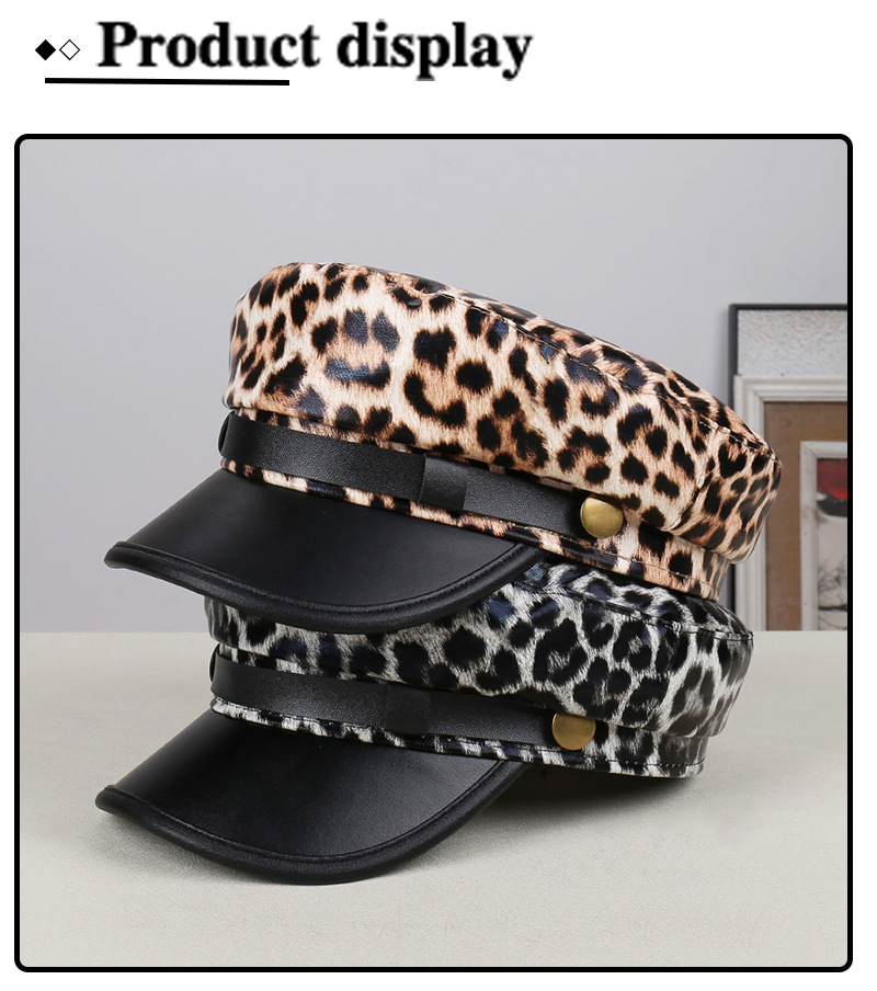 Color: Black-and-white leopard print (flat brim), khaki leopard print (flat brim)