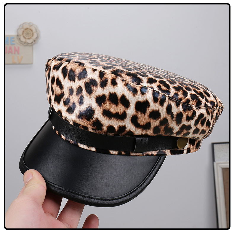 Rare Leopard-print Soft PU Leather Baseball Cap