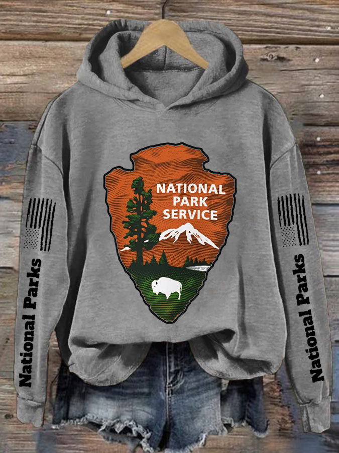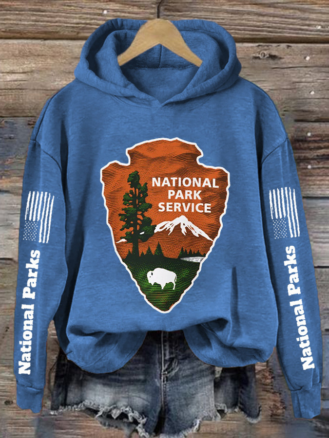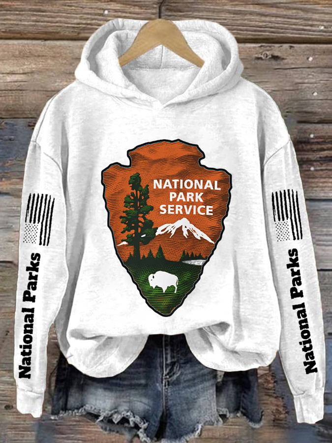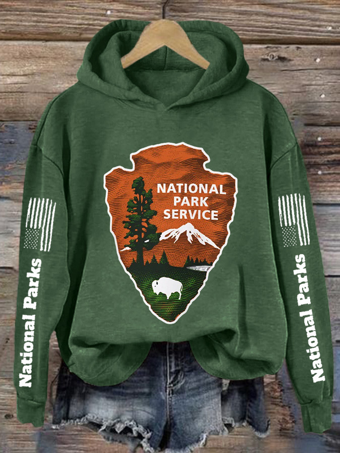 Womens Hooded Sweatshirt With A Forest And Mountain Peaks Design